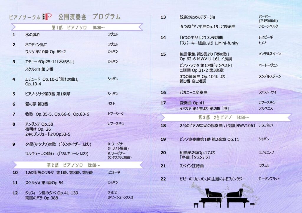 2台ピアノは圧巻で、バッハ、ショパン、ラフマニノフ、ラヴェル、ローゼンブラット、それぞれの演奏者の個性の違いが際立ちました。