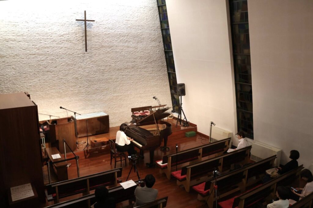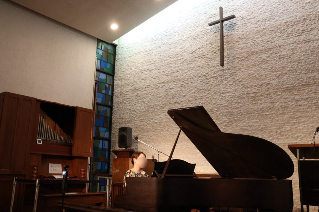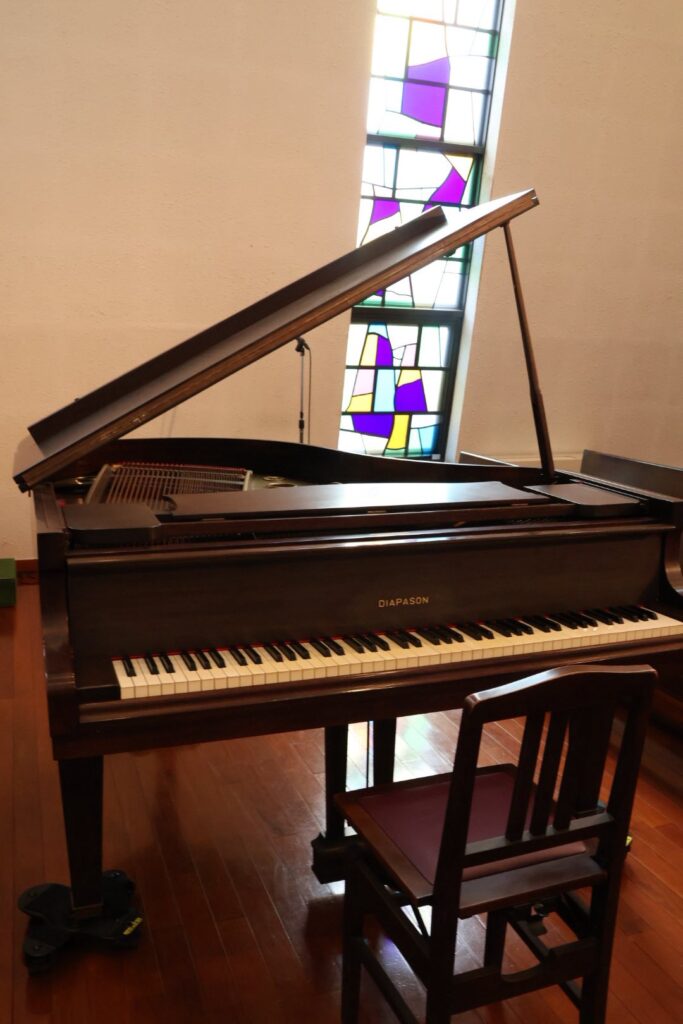 駅から近くでありながら静謐な佇まいの教会で、ピアノはかつて和製ベヒシュタインとも称された大橋幡岩氏の設計によるDIAPASONで、貴重なピアノです。