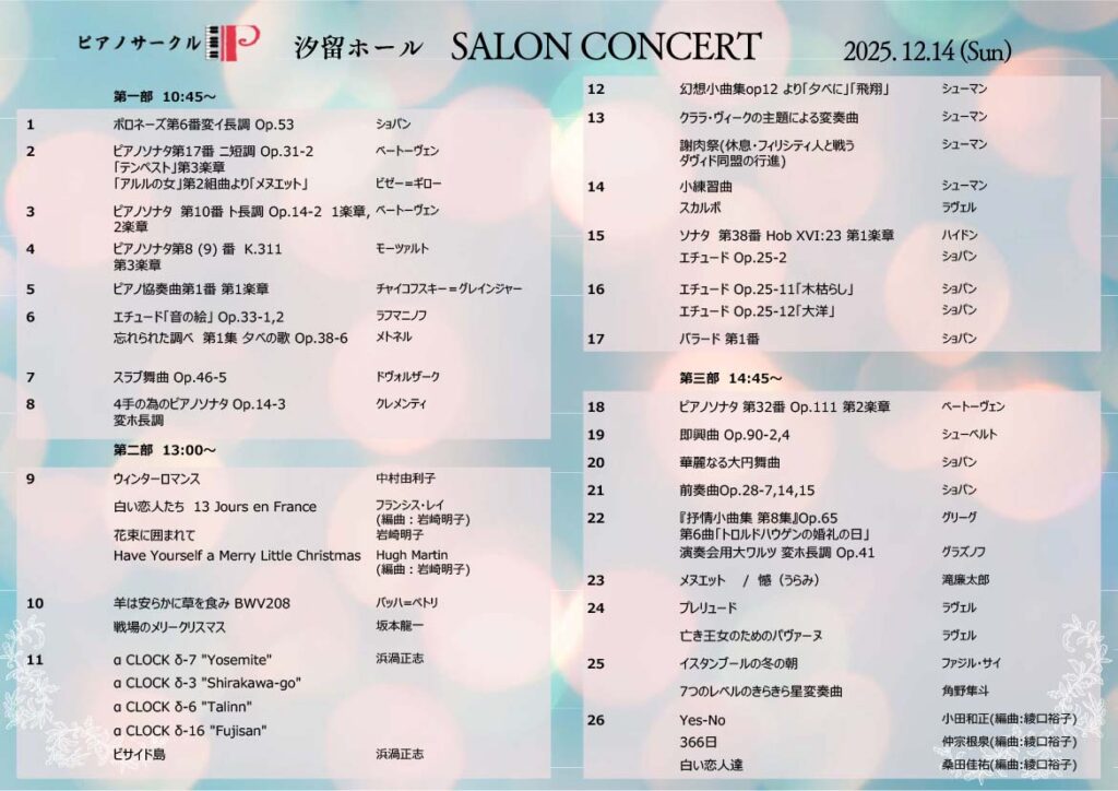 日 時2025年12月14日(日)10:30開場 10:45開演
