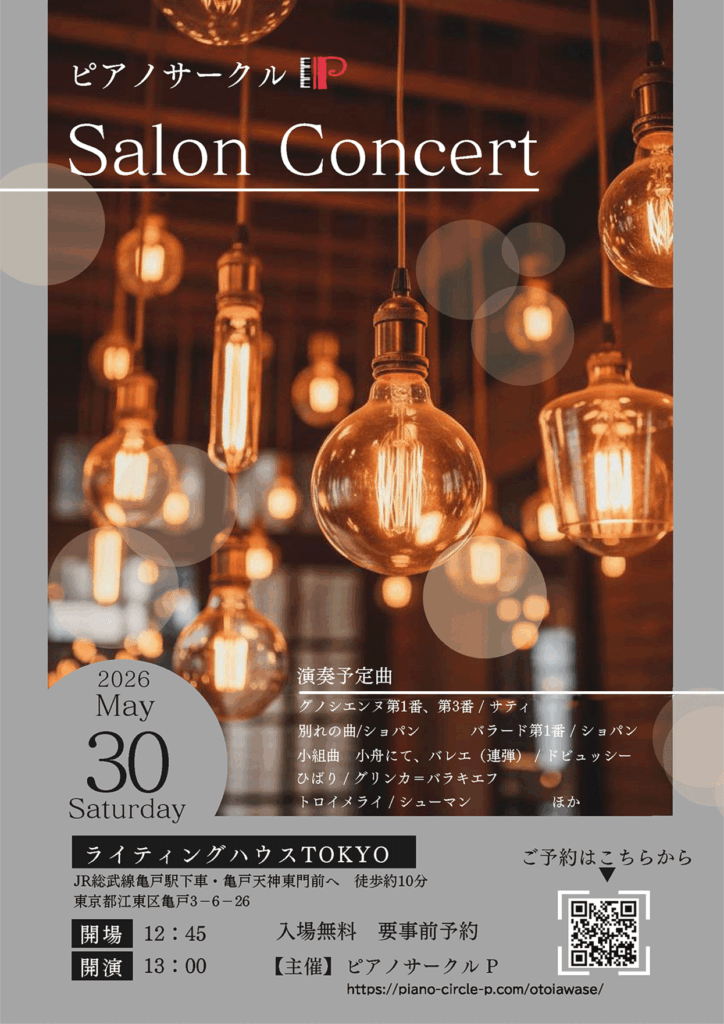 日 時2026年5月30日(土)12:45 開場  13:00 開演